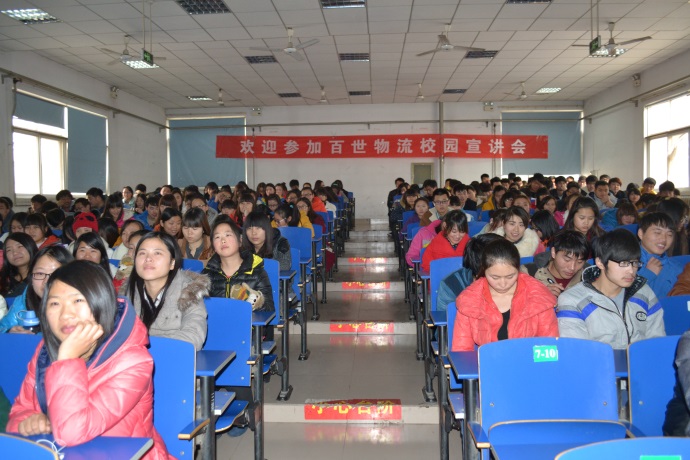 12月3日下午,百世物流科技有限公司人力资源部经理王婷婷、河南分公司人事经理李美菊来我院航海校区举行订单班宣讲会。物流学院13级物流、连锁和市场营销等专业160多名同学参加了此次的宣讲会。 宣讲会结束后,经过填表、面试等环节,最终有20名同学成功入选订单班。
