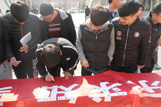 3月13日中午,物流学院在教学楼及文化餐厅前成功举办“文明校园,远离手机”倡议签名活动。