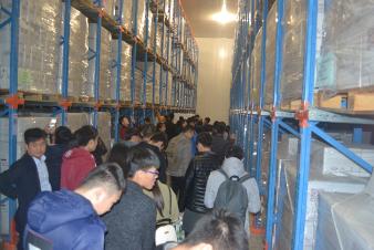 该集团众荣物流公司王治勇总经理带领我院师生参观了公司展示大厅(涉及鲜易网、冷链马甲、日日鲜’三个平台)、专业冷链仓库、办公区域、冷鲜肉生产加工基地等,并对公司的发展历程、企业文化、主营业务、生产流程、战略愿景进行了热情和耐心的讲解,对师生感兴趣的业务关键节点进行了精彩点评。