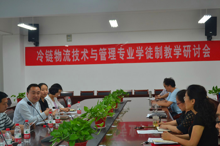 为扎实推进冷链物流技术与管理专业建设工作,2016年6月2日,物流学院在修德楼202大会议室举行冷链物流技术与管理专业学徒制教学研讨会。学徒制合作企业河南华夏易通物流有限公司董事长郅英武率领技术团队应邀参加会议。会议由物流学院李建丽院长主持。冷链物流教研室主任魏继华老师就冷链物流技术与管理专业人才培养方案进行了介绍。双方就本专业学徒制教学的相关事宜进行了较为详细的探讨。