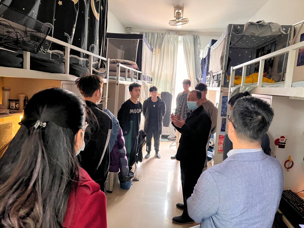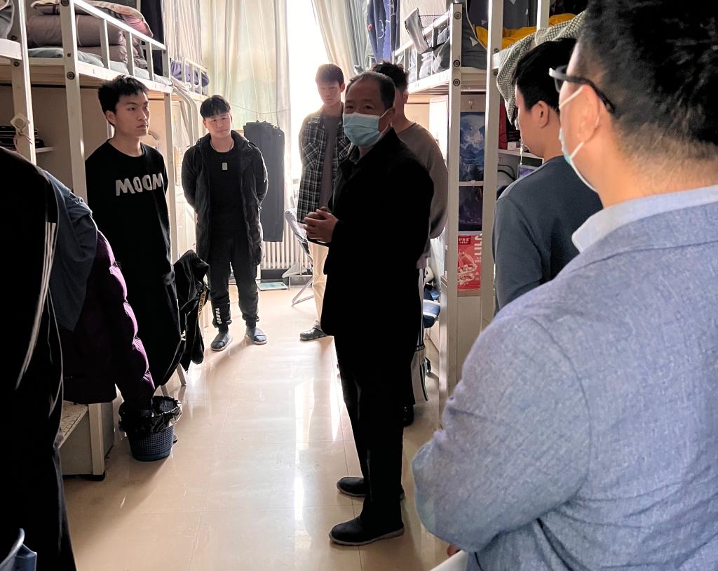 3月31日上午,副校长龚全武带领物流学院负责人深入学生宿舍看望慰问学生,检查督导物流学院日常疫情防控工作。