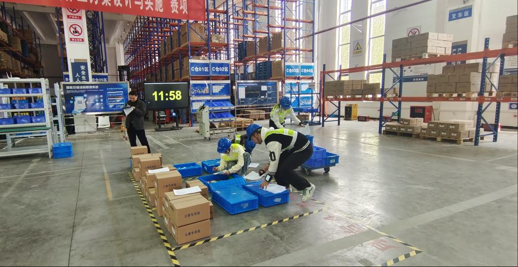 各队选手按照国赛赛事要求进行模拟竞赛:在规定的时间内,根据物流作业方案的设计结果在竞赛场地实施方案。选手选择最佳时机并根据作业任务需求使用托盘、地牛等设备和工具,执行入库作业计划、出库作业计划等。选手在实施过程中充分体现了物流企业作业过程所需要的专业知识、操作技能,团队合作,精益管理,服务质量与安全意识。