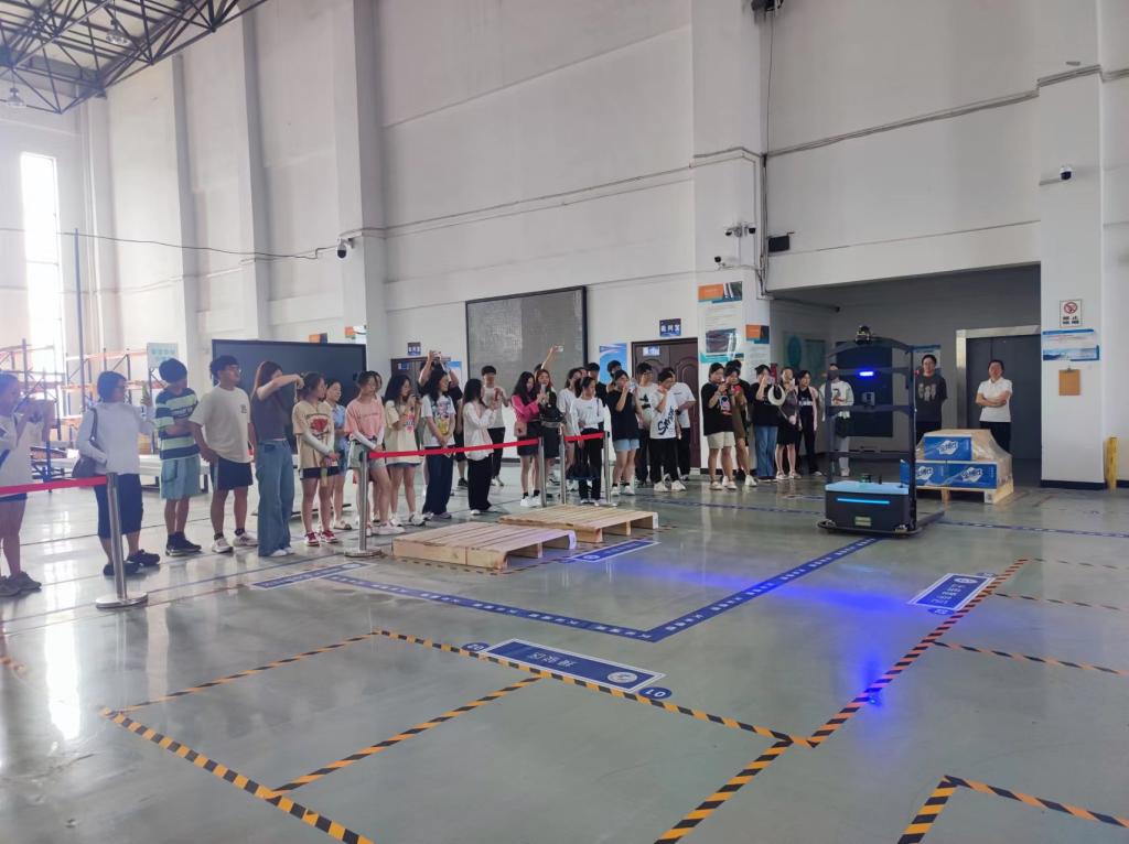 在参观中,实训中心老师向丛教授及学生们介绍了我院物流专业群实训项目的发展历程及大数据时代的智慧物流发展趋势等,特别展示了智能化立体仓储实训系统、VR智能化立体仓储系统和货到人分拣机器人的应用平台;同时也展示了河南省第一届物流行业大赛场地无人堆高车及无人地牛等数字化应用场景,同学们就智能化场景中的细节与实训老师进行了积极探讨。