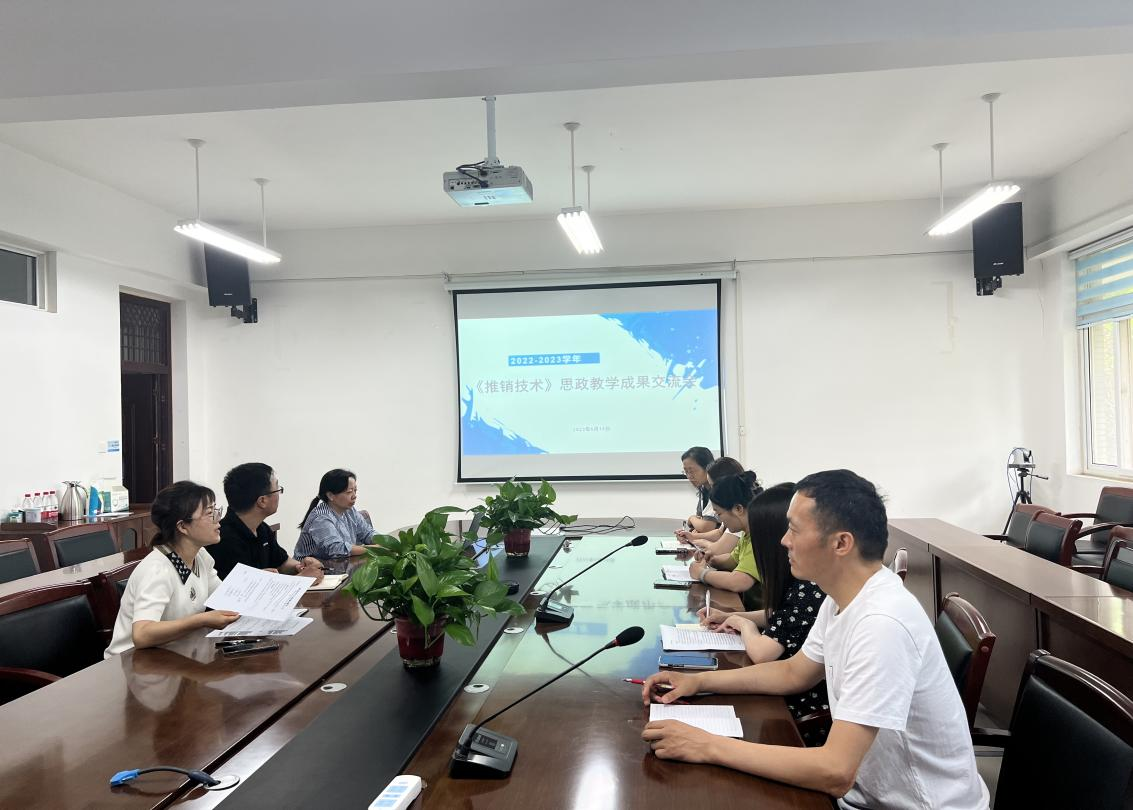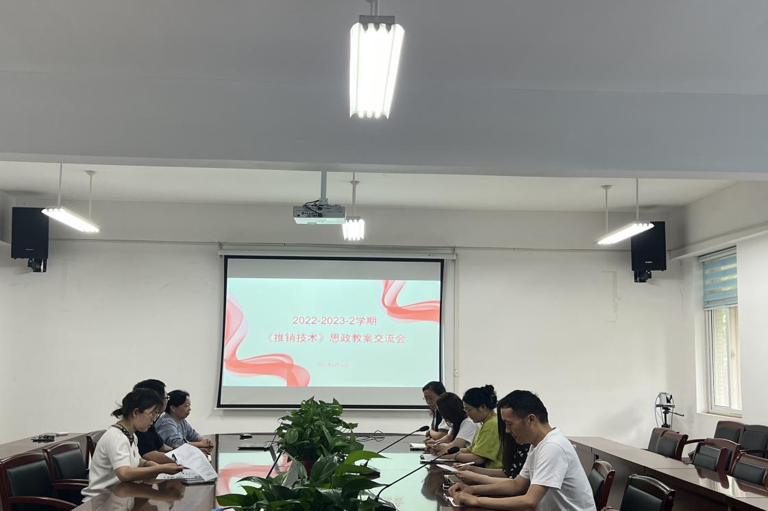 6月16日,推销技术课程建设工作组在物流学院赵梅副院长和李云川书记的主持下召开学期思政教案交流会和学年成果交流会。此次交流会旨在推进本课程思政建设,落实立德树人根本任务。在交流会中,团队成员分享了课程思政教学的成果并指出不足,对“课程思政”进行了深入探讨,充分挖掘了课程思政元素,并针对本学期的教学情况重点讨论了思政案例选取和思政教学融入等问题。会议以提高教师对课程思政的认识为着力点,鼓励教师投身思政教学改革和创新,扎实推进课程思政建设,确保根本任务落实落细。