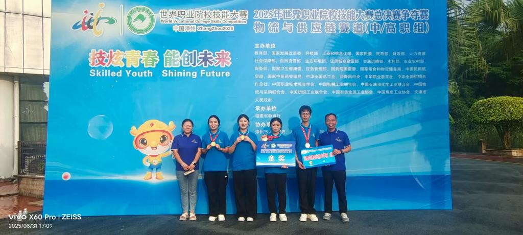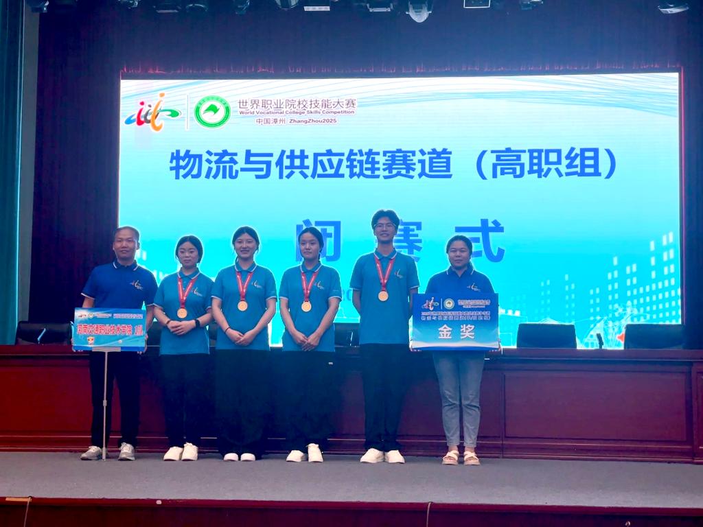 8月31日,2025年世界职业院校技能大赛物流与供应链赛道争夺赛在福建漳州圆满收官。学校物流学院学生马啸川、李倩楠、张晨晨、景尚萍组成的参赛团队在张婉、高晓阳两位教师指导下,以卓越的技能水平从全国131支参赛队中脱颖而出,斩获该赛道金奖,为学校技能大赛荣誉再添璀璨一笔。